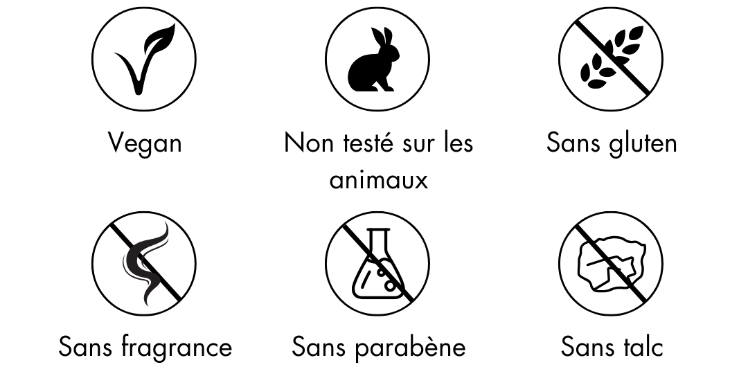 + chaque produit est non testé sur les animaux, sans gluten, sans fragrance et sans parabène